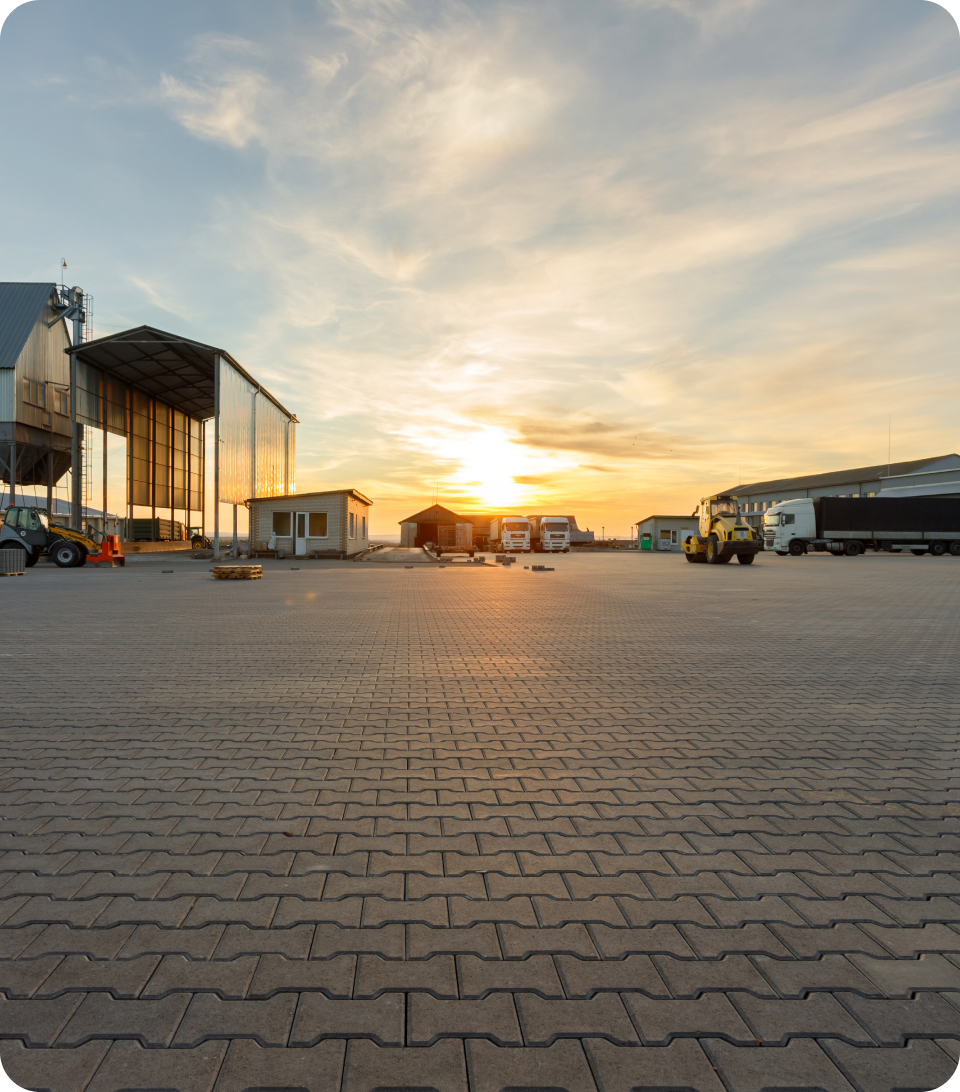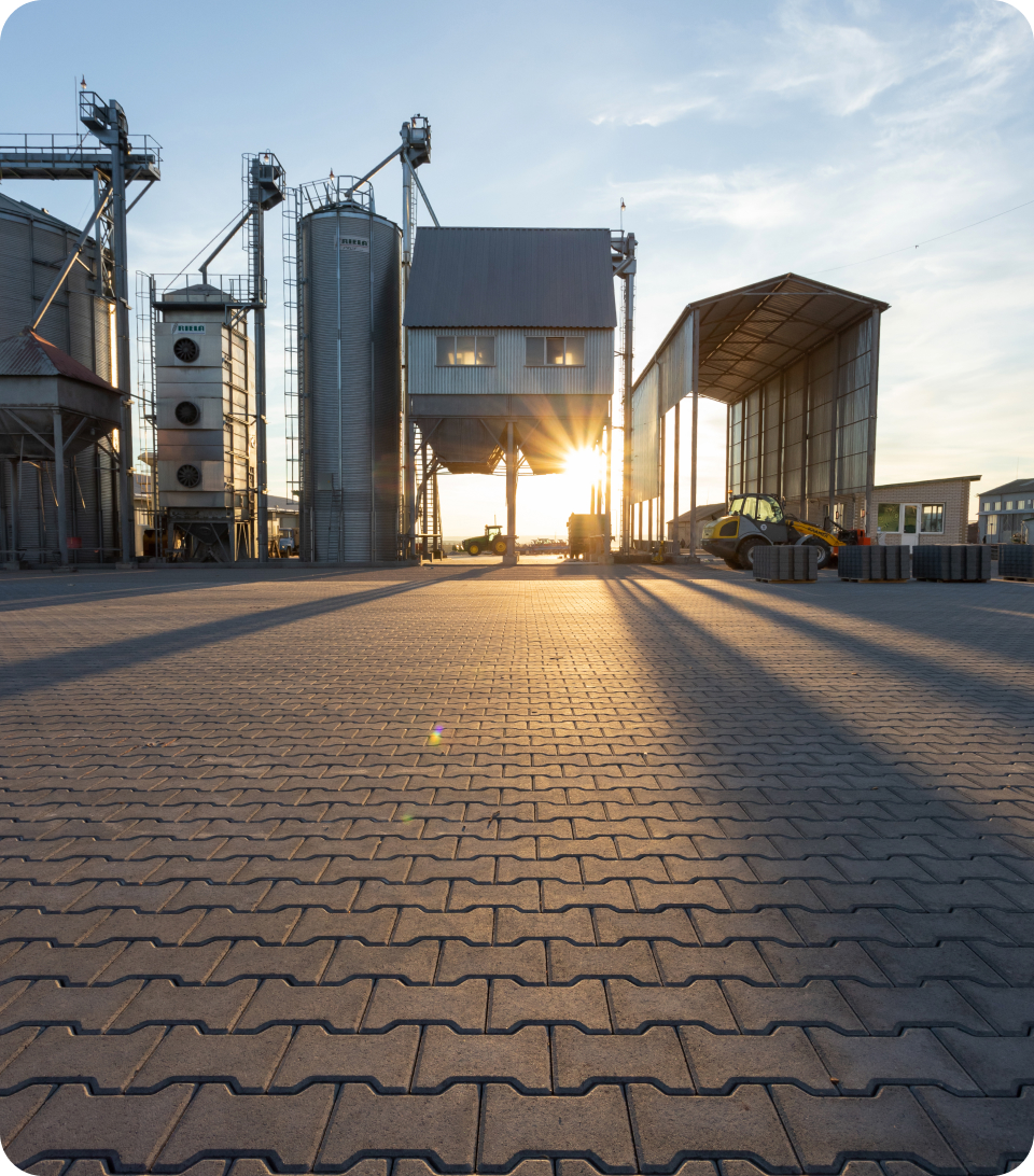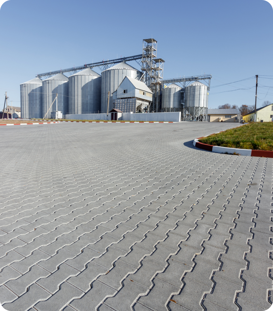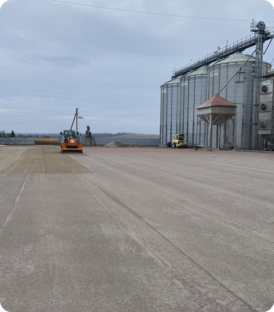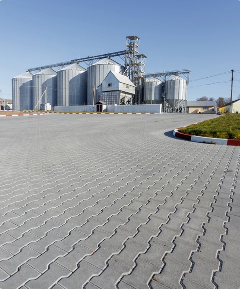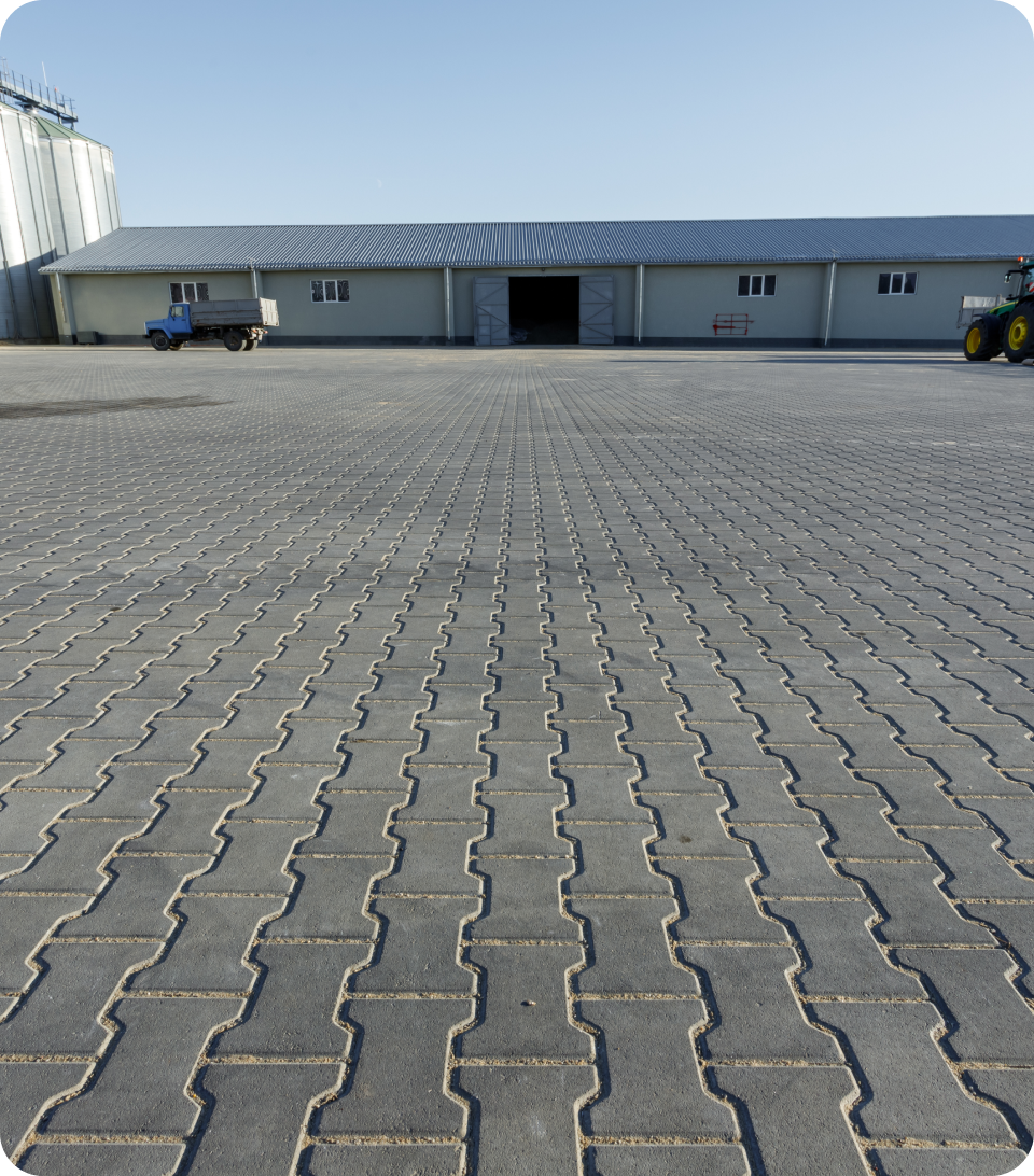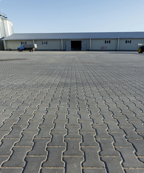 Для фермерського господарства «Агродар» ми виконали мощення 15 000 м² території, адаптованої під екстремальні навантаження масивної агротехніки. Щоб уникнути колій та руйнувань, наші інженери спроєктували посилену основу та використали спеціальні замкові фігурні елементи мощення, які витримують вагу машин.