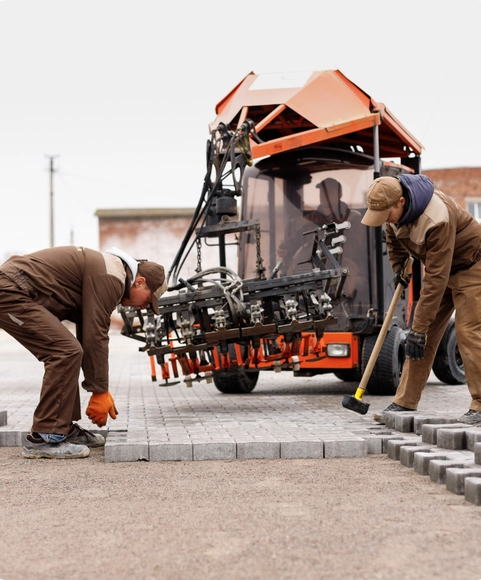 Даний масштабний сільськогосподарський проєкт охопив облаштування великої кількості паркувальних зон та складів. Головним завданням було забезпечення витривалості покриття під постійним рухом важкої агротехніки. Розуміючи, що результат брукування перш за все має задовольняти всі вимоги міцності та стійкості, ми використали наше професійне й спеціалізоване німецьке обладнання.