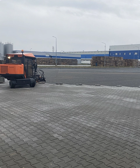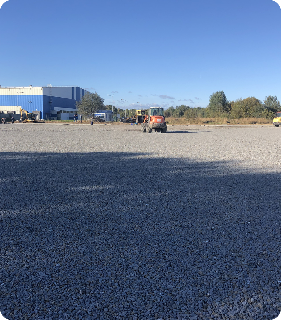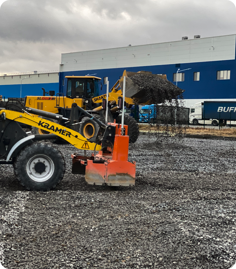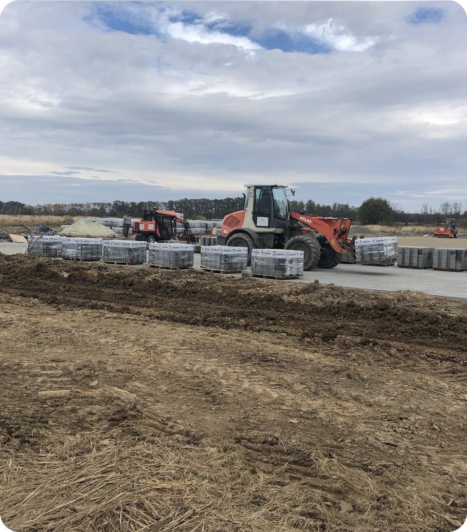 Для підготовки ідеальної основи ми використали нашу професійну німецьку техніку. Саме механізоване мощення бруківки для великих територій дозволяє зменшити вплив людського фактора та у 10 разів перевищувати ручне вкладання. Таким чином, забезпечивши професійне укладання бруківки від Brukar, ми гарантували довговічну та міцну інфраструктуру підприємству.