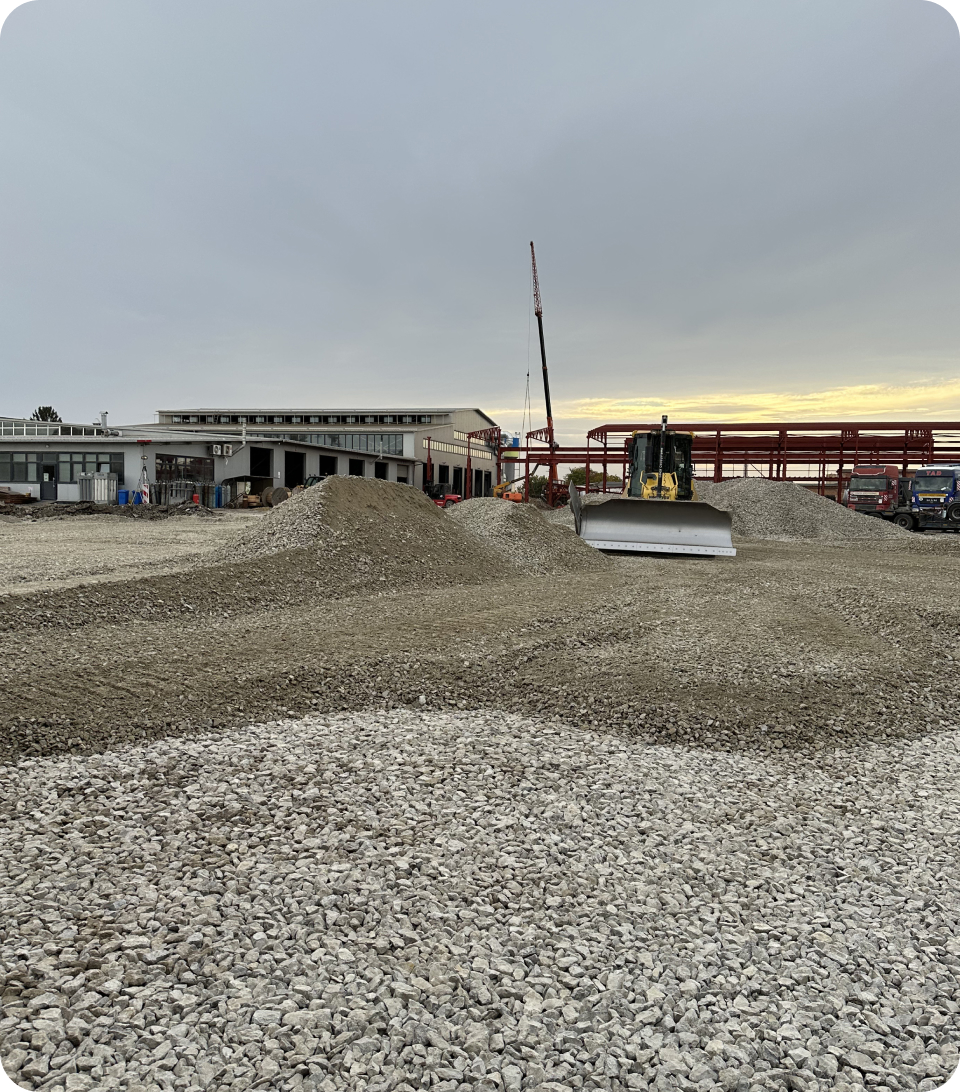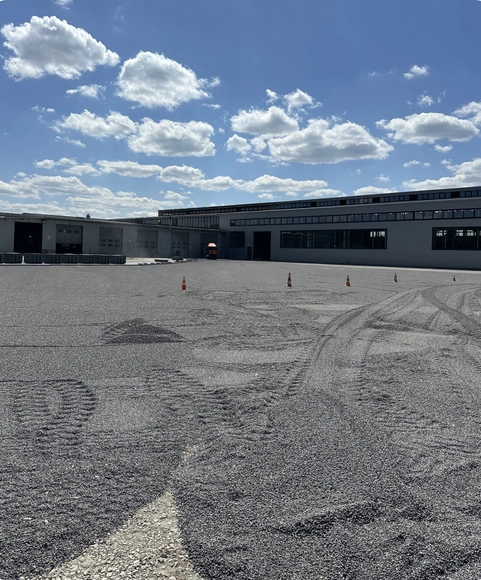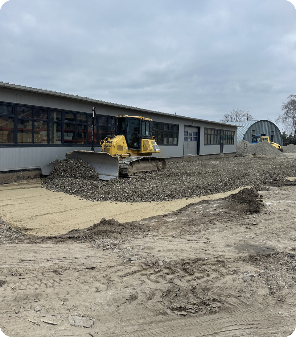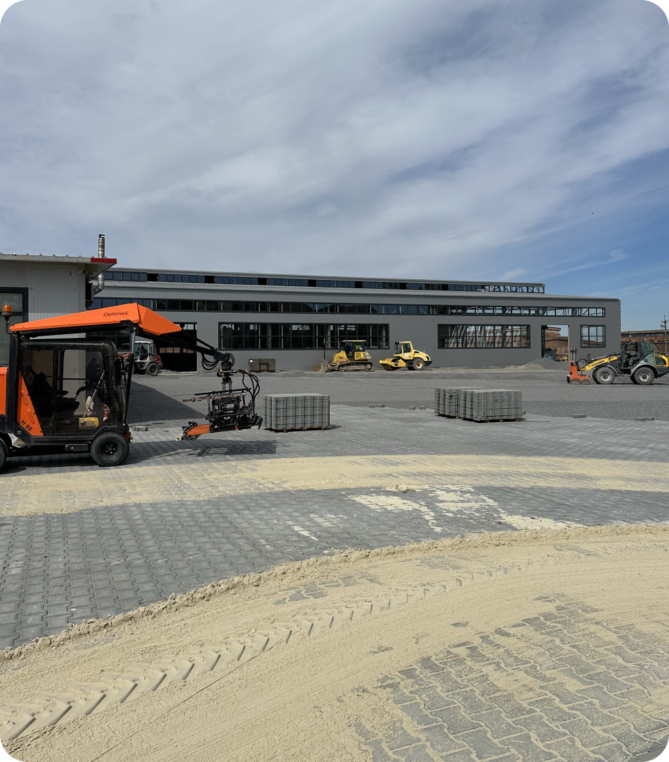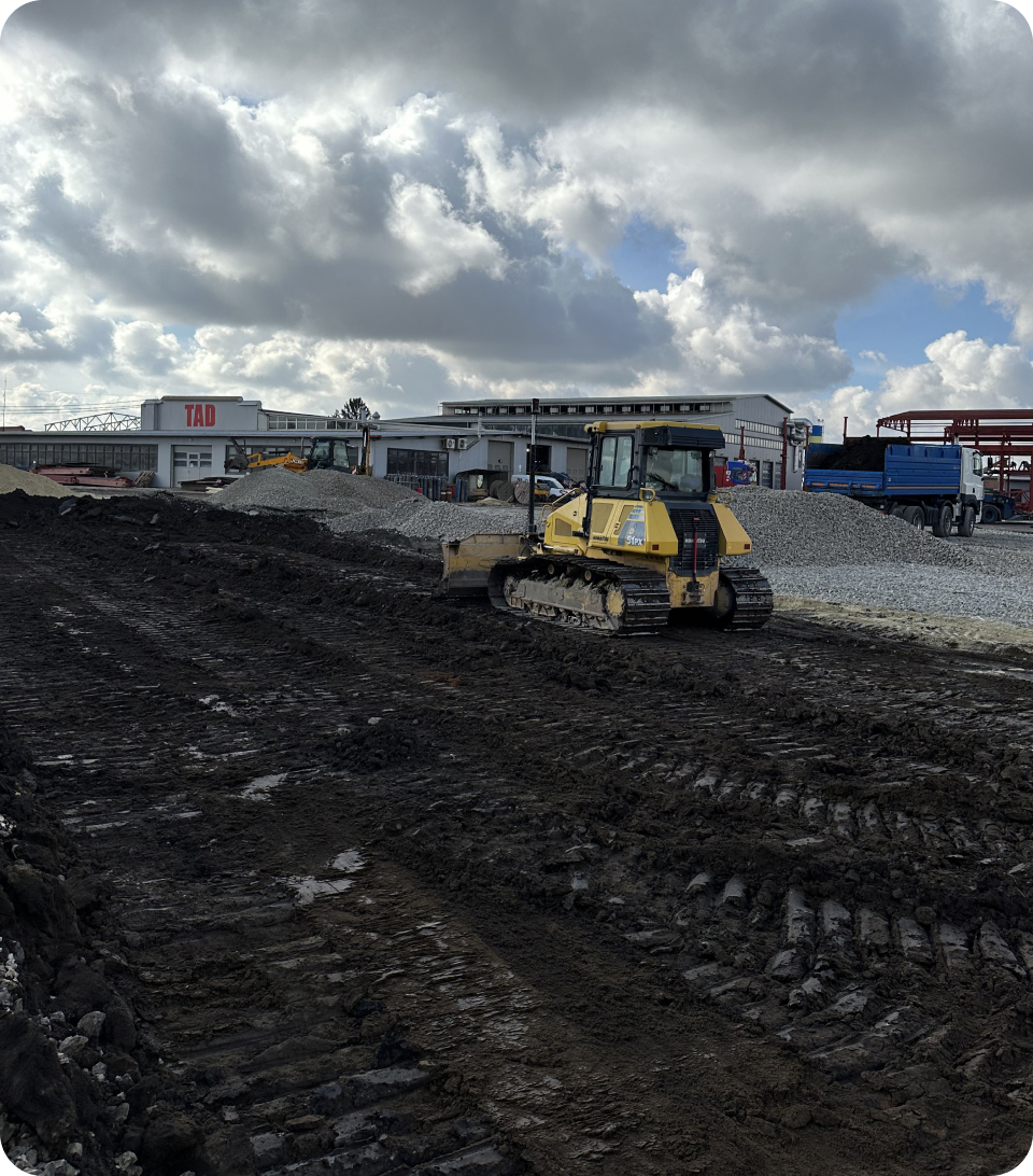 Для виробничо-транспортного підприємства “TAD” ми реалізували масштабний проект бруківки 28 000 м2, орієнтований на екстремальні навантаження. Оскільки бренд спеціалізується на виробництві причепів і напівпричепів (тралів, зерновозів) для негабаритних та агро-вантажів, територія має забезпечувати ідеально рівний проїзд та витримувати вагу багатотонних конструкцій без жодних просідань.